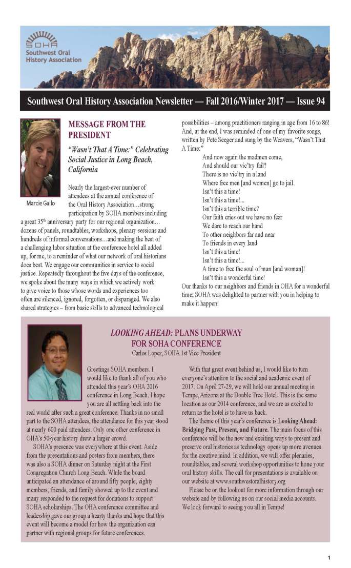 We hope you enjoy our Fall/Winter Newletter! Please become a SOHA member to receive a copy emailed directly to you with many other benefits. Consider becoming or gifting a lifetime membership for $250. Thank you for being a part of our community. We hope to see you at our next conference in Arizona!