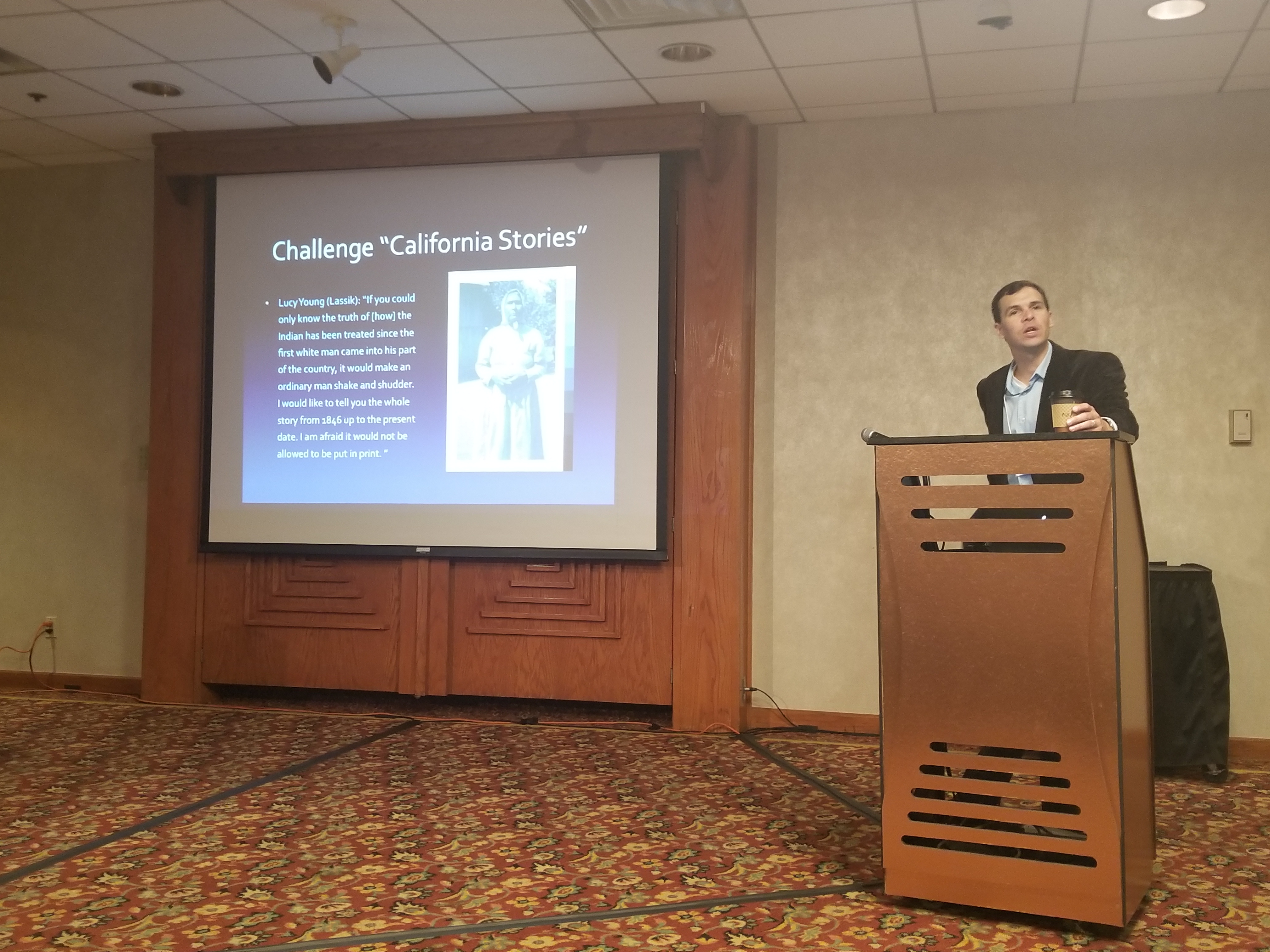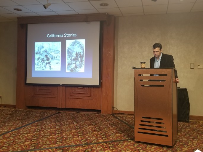 We are delighted to have William J. Bauer, Jr. as our keynote speaker. Our President, Marcia Gallo, is shown here introducing her colleague from UNLV. His keynote address is titled, “Seeing West Mountain: Concow Oral Histories of California during the Great Depression.”