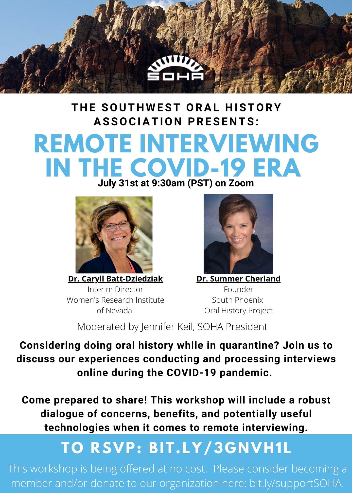 Finally, beginning on September 3rd, The South Phoenix Oral History Project will be hosting a monthly virtual “happy hour/cafe” for oral historians. We invite you to call in to talk about a monthly topic with a special guest. Click here for the schedule and to register.