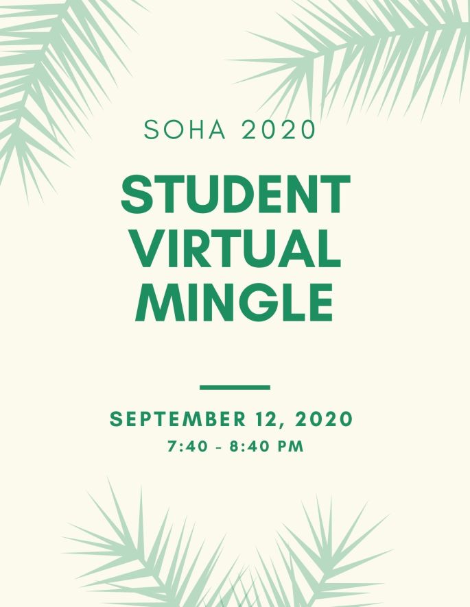 The student virtual mingle is hosted by the SOHA Student Representative Teagan Dreyer