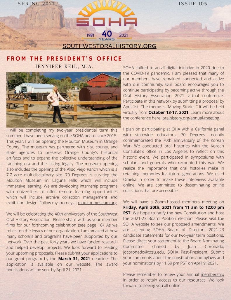 We hope you enjoy our Spring 2021 newsletter! Please share it with your colleagues and communities. We hope you can join us for our #SOHA2021 online events!