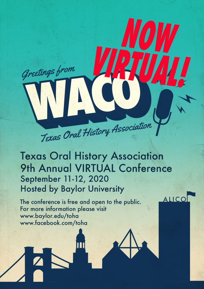 We appreciate everyone’s diligent effort and support for the Southwest Oral History Association (SOHA) 2020 Annual Conference. As the COVID-19 (coronavirus) pandemic and health issues develop, travel bans and freezes on travel funding are affecting and prohibiting our members and conference participants from attending. Our registration and hotel room group rate reservations reflect these pressing circumstances. After having conducted several meetings and voting consensus, SOHA board members and conference organizers have decided to postpone the SOHA 2020 conference from March 27-29, 2020 to September 2020. We had considered offering an online conference, but this isn’t the tradition of our organization.