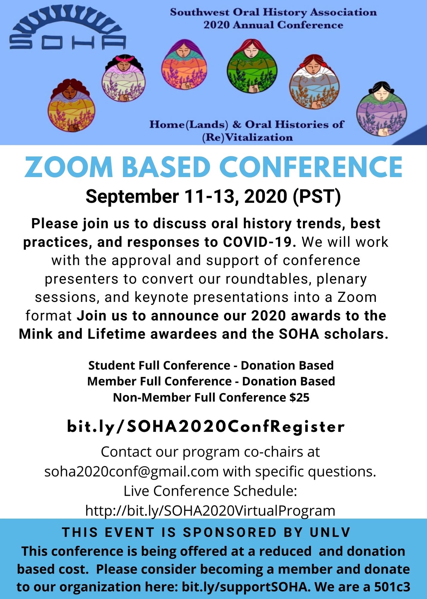 SOHA offered the conference at no-cost/donation basis to students and members with a nominal cost to non-members. Because donations help sustain our 501c3 non-profit, we hope you will consider renewing/joining our membership or donating directly to our programs: bit.ly/supportSOHA.