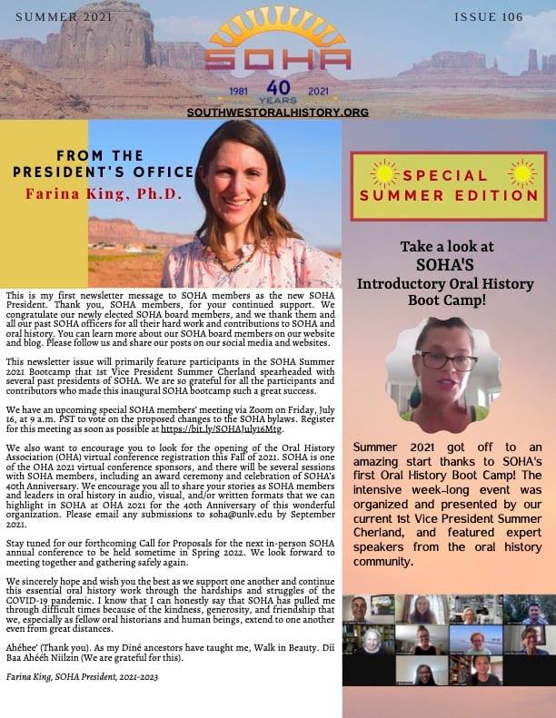 We are happy to announce that our SOHA 2021 Special Summer Edition Newsletter is now available to download. Thank you to SOHA 2nd Vice President Cynthia Castaneda for preparing the newsletter, and thanks to all our contributors! Please check out and share this summer’s newsletter that is linked below!